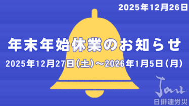 年末年始は2025年12月27日(土)~2026年1月5日(月)まで休業とさせていただきます。